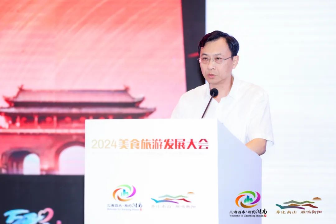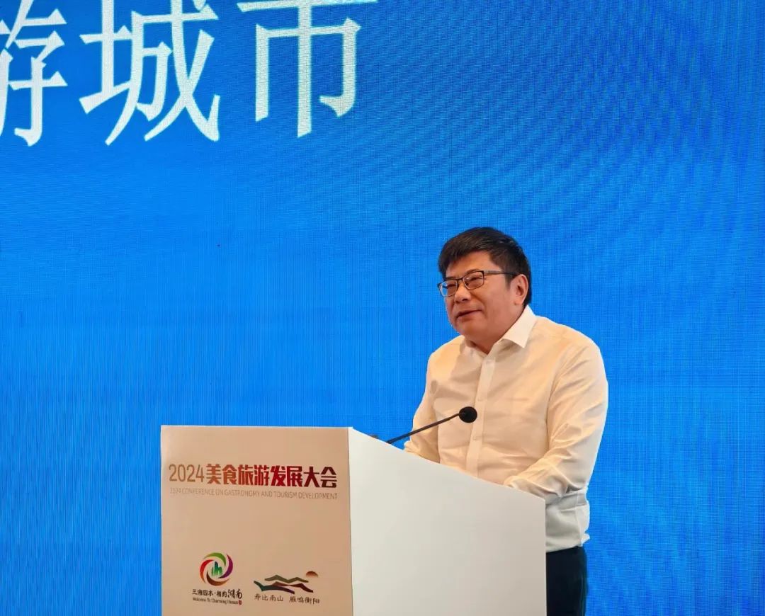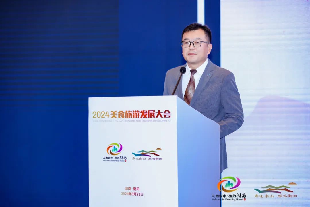 9月21日,由中国旅游研究院、湖南省文化和旅游厅、中共衡阳市委、衡阳市人民政府联合主办,湖南省旅游协会、衡阳市文化旅游广电体育局、衡阳市商务局承办,世界中餐业联合会支持举办的“2024美食旅游发展大会”在湖南衡阳举行。大会围绕“融合、创新与高质量发展”主题,通过主题演讲、成果发布、案例发布与经验分享、嘉宾对话等环节,旨在贯彻落实习近平总书记关于文化和旅游工作重要讲话和指示批示精神,贯彻落实全国旅游发展大会精神,探索“美食+旅游”深度融合创新发展路径,推动中国美食旅游高质量发展。活动由湖南省文化和旅游厅党组成员、副厅长尚斌主持。