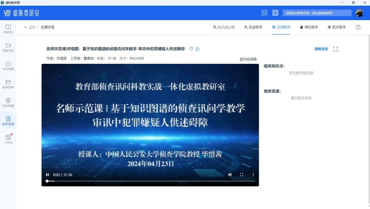 为深入贯彻落实党的二十届三中全会精神和全国教育大会精神,推进落实国家教育数字化战略行动,切实加强虚拟教研室建设,进一步巩固建设成效,教育部组织专家在对全国787个虚拟教研室平台进行数据监测和考核评价的基础上,遴选了50个典型教研室并进行表彰。我校侦查学院毕惜茜教授负责的“侦查讯问课程虚拟教研室”再次入选 “典型虚拟教研室”,“共建青年教师观摩课”入选“典型教研方法”。