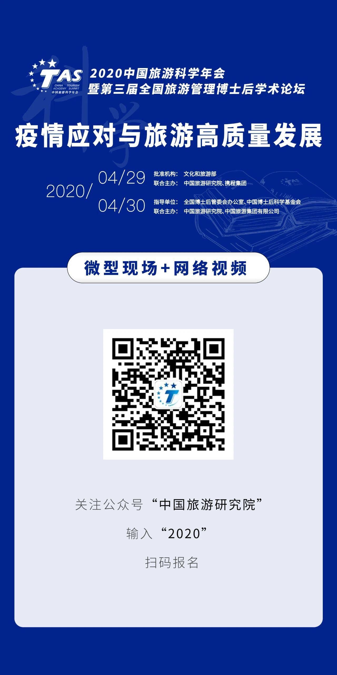 经文化和旅游部批准,由中国旅游研究院与携程集团联合主办的“2020中国旅游科学年会”将于4月29-30日在线召开。 文化和旅游部党组书记、部长雒树刚将出席开幕式并讲话。 由全国博士后管委会办公室、中国博士后科学基金会担任指导单位,中国旅游研究院、中国旅游集团有限公司共同主办的“第三届全国旅游管理博士后学术论坛”也将同期举行。