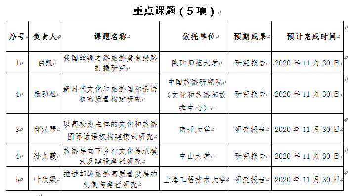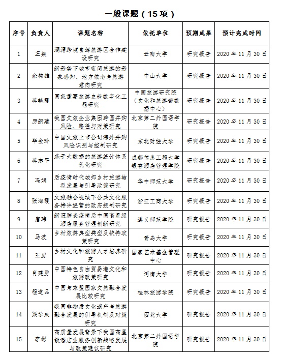 关于2020年文化和旅游宏观决策课题立项名单公布