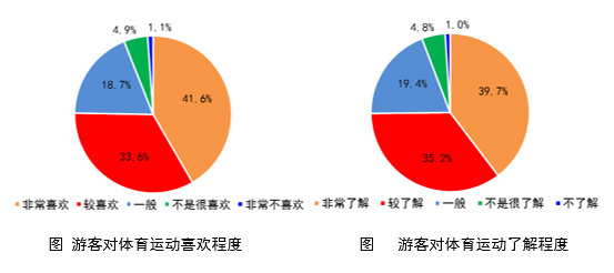可以不了解,只要喜欢就来一次体育旅游,冲动消费是体育旅游当前的重要特征。当前我国参与体育旅游的消费群体中,75.2%的消费者对体育运动表示喜欢,当涉及到对体育运动的了解程度方面,74.9%的消费者认为自己对体育运动有一定了解,这说明当前消费者对体育运动的喜欢大于了解。同样在消费者对体育赛事的喜欢和了解程度上也可见端倪,调查问卷显示,大众对体育赛事的喜欢程度
