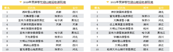 根据热门游玩地及其所属目的地数据显示,相比东北滑雪资源丰富的老牌区域,2021年华北、华中、华东区域滑雪场热度上升。除滑雪之外,浙江丽水的山地骑行也受到游客欢迎。