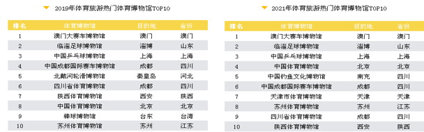 根据热门体育博物馆及其所属目的地数据显示,澳门大赛车博物馆居于首位。临淄足球博物馆、中国乒乓球博物馆稳居第二和第三。2021年,在碧海春季钓具产业博览会中,不止有线下的钓友观众,还有抖音线上直播活动,更好的推广了垂钓文化,也推动了中国钓鱼文化博物馆热度的大幅上涨。