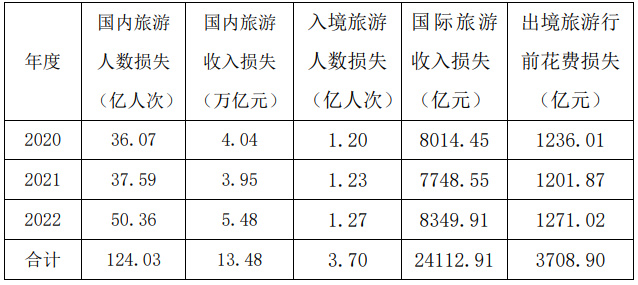表1 2020年-2022年旅游市场潜在损失估算