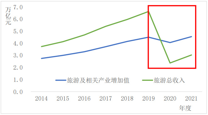 图1 国家统计局相关部门统计的旅游及相关产业增加值与旅游总收入
