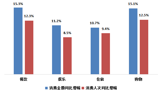 “五一”小长假各行业游客消费增长情况