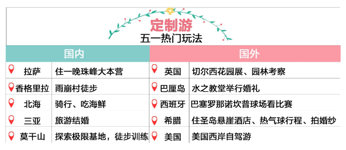 随着人们对旅游体验的重视加深,常规的景点观光游已不能完全满足游客个性化的需求。今年“五一”涌现出一批时尚新玩法,定制游、主题游、当地向导报名火爆。马蜂窝数据显示,“五一”期间,自由行游客最关注的十个关键词分别为:行程规划、自驾、景点、美食、酒店、交通、天气、行前准备、亲子游、海岛。其中,关于自驾游行程规划的提问最多,有关目的地美食、景点、交通等当地旅游消费的游记和讨论也受到游客广泛关注。从携程主题游数据来看,小长假期间最受欢迎的主题游类型是:奢旅生活、徒步登山、深度摄影、潜水和极地探索。体验英国皇室生活、品味唐顿庄园悠闲下午茶不再是电视剧中的桥段,通过丰富的旅游方式游客可以亲身体验并且尝试更多的新玩法。此外,旅游者可以通过普吉岛的“洋向导”体验双体帆船包船出海,去马来西亚潜入沙巴红树林探索长鼻猴和萤火虫共舞,甚至在西安亲自制做兵马俑。