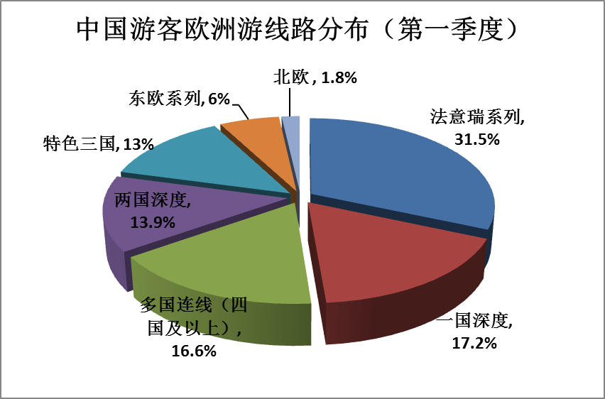携程旅游数据显示,2018年第一季度预订欧洲游的人数同比实现35%增长,欧洲是中国游客选择的第二大目的地区域,占比9%仅次于亚洲。