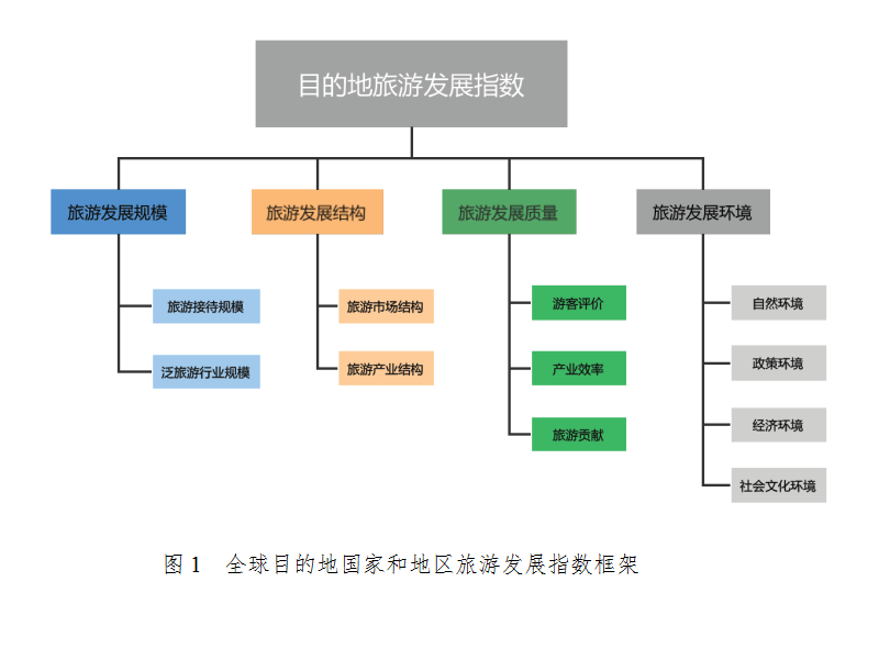 其中,目的地旅游发展规模指数(TVI),旨在从供给和需求两个方面来衡量旅游业的总体规模,包含旅游接待规模和泛旅游产业规模两个方面的细分指标。目的地旅游发展结构指数(TSI),旨在反映旅游经济结构的合理性水平,涉及旅游市场和旅游产业两个方面的指标。目的地旅游发展质量指数(TQI),旨在衡量目的地旅游发展的质量水平,从游客评价、旅游产业效率和旅游经济贡献三个方面来衡量。目的地旅游发展环境指数(TEI)旨在衡量目的地旅游发展综合环境的优越性。旅游发展环境由对旅游发展具有广泛影响的自然、政策、经济、社会文化等几个亚环境组成。